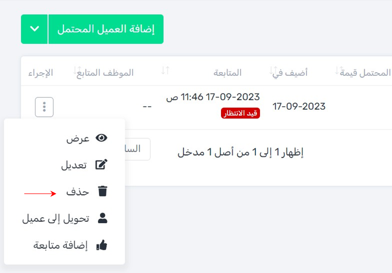 في حالة حذف العميل المحتمل من قاعدة العمالء المحتملون فلن تتمكن من استعادته مرة أخرى