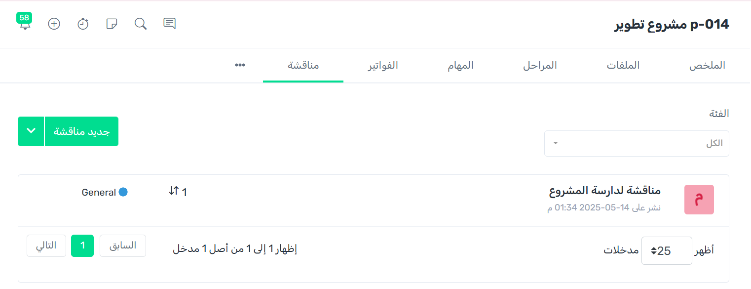 يمكنك الوصول الى مناقشات المشروع من خلال اتباع الخطوات التالية: