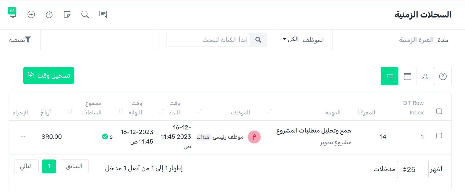 لتسجيل وقت اضغط على زر تسجيل وقت.