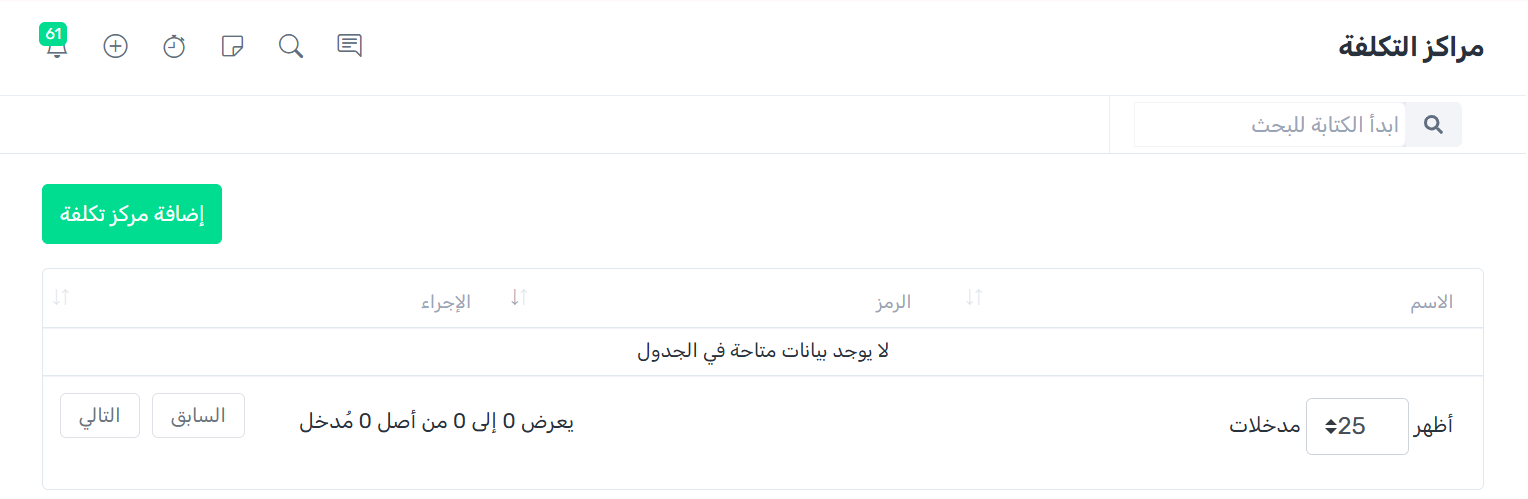 انقر على زر إضافة مركز تكلفة.