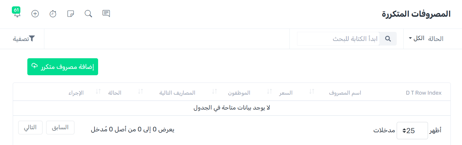 يمكنك إضافة مصروفات متكررة من خلال اتباع الخطوات التالية: