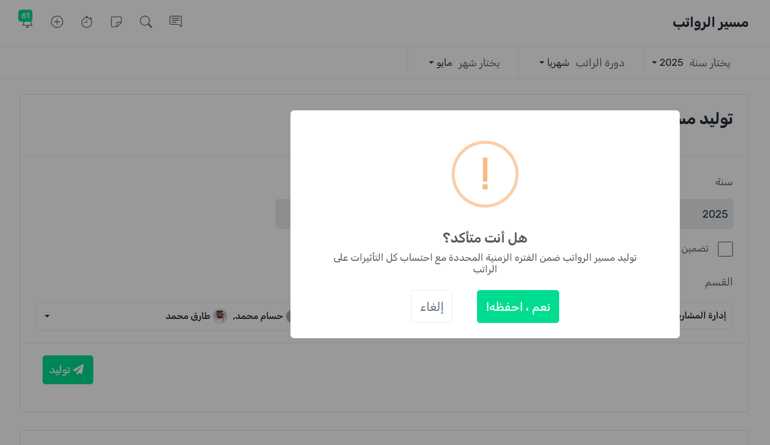 يمكنك توليد قسيمة راتب الموظف من خلال اتباع الخطوات التالية: