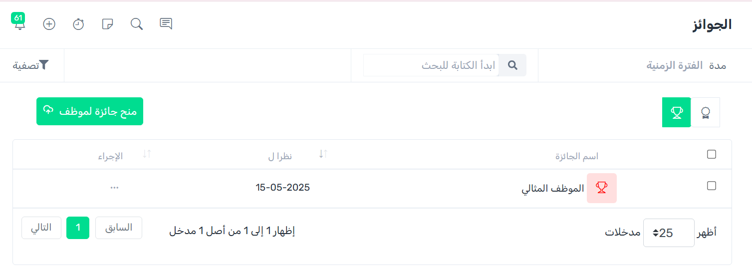 انقر على زر منح جائزة لموظف.