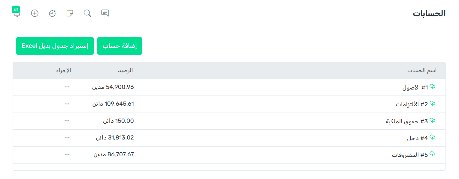 انقر على تبويب دليل الحسابات.