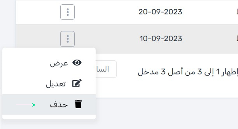 انقر على زر حذف الموجود ضمن قائمة الإجراءات في أقصي الجهة اليسرى.
